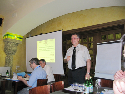 Тренер від країн Європейського Союзу Петері Габор (Угорщина) виступив перед учасниками тренінгу з презентаціями на тему: «Реформування держсектору: функції та цілі обслуговування клієнтів» і «Реалізація обслуговування клієнтів: програмні кроки».