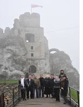 2) Огляд замка ХІІІ століття. Гміни юрського періоду мають ряд цікавих середньовічних замків. Однин з таких замків ХIII століття заходиться в м. Огродзинеці. Замок на половину зруйнований й тому, що постраждав від навалу шведів. Цікавим є той факт, що при будівництві замків використовувались природні скелясті відкладання, що додатково зміцнювало стіни замка. Зараз поруч із замком заходиться один з інформаційно-туристичних центрів, де є вся необхідна інформація для туристів (карти розташування замків, буклети з описом історичних пам’яток, карти велосипедних та піших туристичних маршрутів та ін). На території замка розміщені торгівельні намети, де можна придбати сувенірну продукцію з зображенням замку та символіки. Також на території замка проходить багато концертів та вистав на історичні тематики.