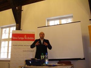 Первая встреча - во время которой Адам познакомил всех с историей Коллегиума, презентовал опыт работы этой неправительственной организации, которая имеет издательство собственной газеты (www.new.org.pl) и с 2004 года осуществляет программу обучения «Восточная Зимняя Школа» (www.stadytowrs.pl), для студентов получающих степень магистра.