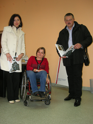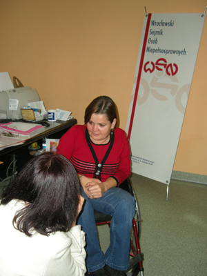 Третья встреча состоялась в НГО «Сеймик лиц с ограниченными способностями» (с г-жой Марией Феликс, директором офиса Сеймика), которому уже 15 лет. Фактически это ассоциация организации людей с ограниченными способностями и работает она как Центр информации и Центр обучения для инвалидов. Цель – сформировать в людях отношение к людям с ограниченными способности как к нормальным людям. Организацию финансирует гмина Вроцлава. Сотрудники организации проводят пиар-кампании для жителей о том, что инвалиды как и нормальные люди должны иметь доступ ко всему (образование, услуги, и пр.). Существует проекты «Вроцлав без барьеров» и «Нижняя Cелезия» - без барьеров. В рамках эти х проектов проводятся фотоконкурсы с тематикой, которая показывает жизнь инвалидов, художественные конкурсы для детсадов и начальной школы «Инвалид глазами ребенка». Для молодежи – встречи по толерантности и осведомлению того факта что вокруг есть люди-инвалиды. Организуют акции для студенческой молодежи – цель донести то, что студентами могут быть инвалиды. Есть так же Уполномоченный по правам инвалидов. Очень большой успех имеет сотрудничество организации с институтом архитектуры – цель доносить информацию о том, что в архитектурных решениях существуют барьеры для инвалидов . Внедряется так же тема обучений по вопросам архитектурных барьеров. Организации также сотрудничает с ботаническим и зоологическим отделениями Университета. Например в ботаническом саду и зоопарке – ликвидированы все барьеры. Проводятся так же конференции по различным проблемным вопросам, организация выполняет так же заказы по мониторингу и исследованиям проблем и состояния дел у инвалидов, встречи по ознакомлению с новинками оборудования для инвалидов.