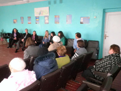 Ознайомились із результатами допомоги Європейського Союзу на фінансування мікропроекту ГО «Пан Єпіфан» під назвою «Облаштування сільського ФАПу» що було впроваджено в рамках співпраці громади із Проектом ЄС/ПРООН «Місцевий розвиток, орієнтований на громаду». Оглянули саме приміщення ФАПу та біологічну каналізаційну системи із бактеріями. Обійшли будівлю сільської ради, в якій знаходяться всі важливі для громади об’єкти – сільський ФАП, пошта, бібліотека, маленька хореографічна зала, обрядова зала (яка одночасно виконує функції зали для зборів громади та проведення громадських заходів), інформаційно-ресурсний центр розвитку громади (який одночасно виконує функції офісу сільської громадської організації ГО «Пан Єпіфан»). В ресурсному центрі Любов Олександрівна Малихіна (голова ГО «Пан Єпіфан» ) показала презентацію по діяльності громадської організації із зазначенням детальних кроків її створення, розвитку, планування та впровадження мікропроектів за методологією Проекту ЄС/ПРООН.