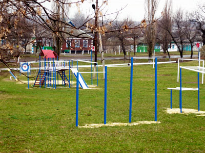 Поруч з Будинком культури є великий галявина, де розміщено вуличний спортивний майданчик з футбольним полем. Перша весіння зелена трава придає взагалі всьому цьому справжній європейський вигляд.