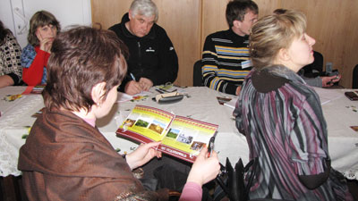 “2-й день. Бобриково – супер! Голова сельсовета – умничка! Общественная организация - оптимисты своего дела. Для себя взяла много интересного, зародились идеи по организации культурной жизни в селе, районе. С удовольствием их будем реализовывать. Создадим свой поселковый ресурсный центр и станем инициаторами проектов частично и районного масштаба. Антрацитовская райгосадминистрация на отличном примере создание своего бренда показала все что нам надо. Поэтому первыми нашими действиями будут - создание своего бренда, логотипа села (конкурс в школе, среди молодежи и жителей села). На еще нужна подробная информация по нормативным документам ресурсного центра и по написаниям проектов - есть трудности в оформлении проекта (НДС, ПДВ и т.д.), поэтому если будет возможность, хотелось бы обучиться и по этому вопросу.”
