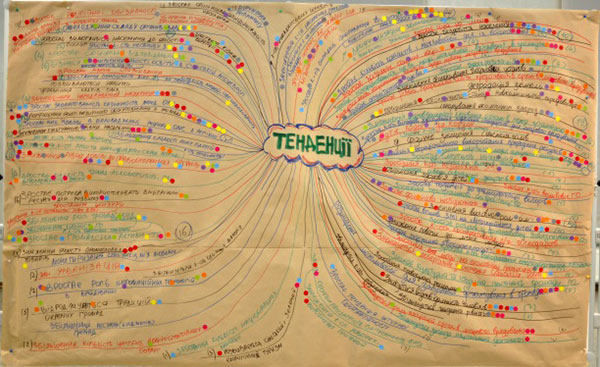 Після цього учасники наліпками голосували за найбільш значимі, на їхню думку, тенденції, що стало основою для роботи наступного дня.