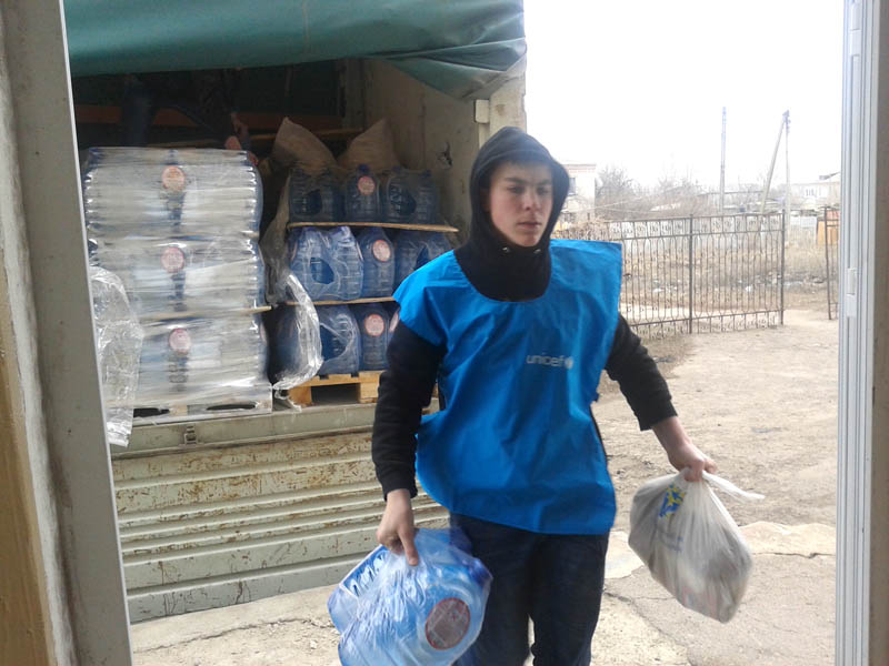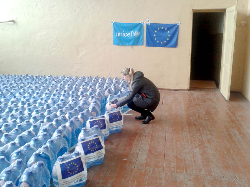 Поставка питної води організована в рамках програми «Екстрена допомога теріторіям зони АТО, які мають проблеми з водопостачання» за підтримки Дитячого Фонду ООН (ЮНІСЕФ).