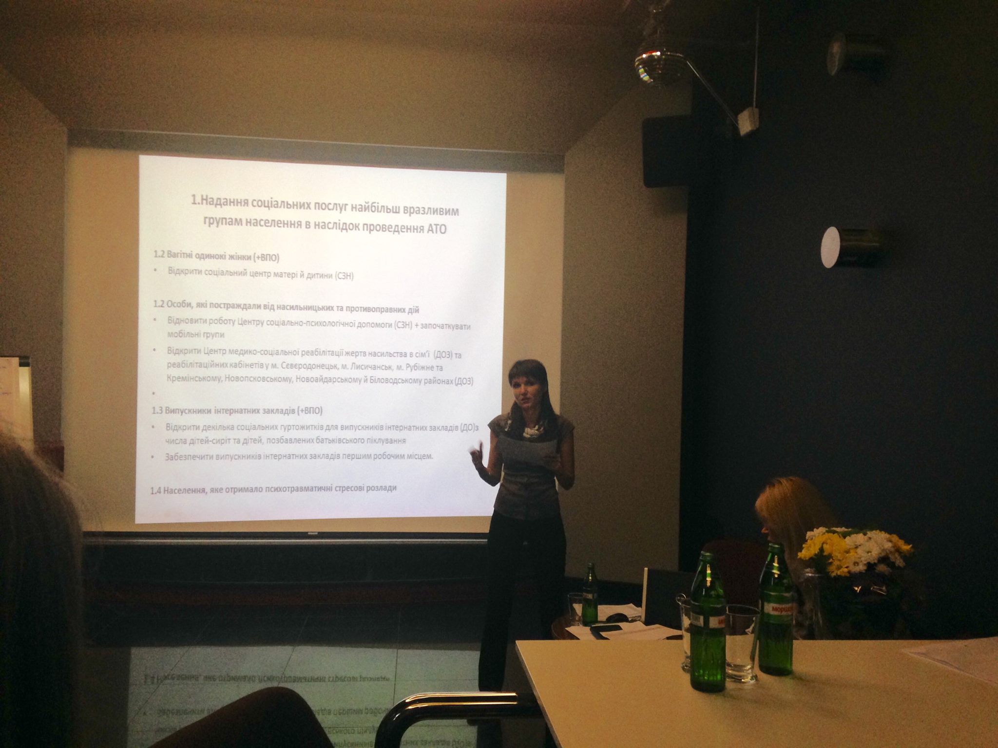 Після семінару «Основи стратегічного планування в соціальній сфері», що проходив вересня 2015 року в рамках проекту «Відновлення соціальних послуг та налагодження миру в Донецькій і Луганській областях», організованому Програмою розвитку ООН, разом с управлінцями Луганської облдержадміністрації, експерт АСР Луганського регіону Сафронова Наталья пезентувала команді АСР розроблену робочу версію Програми з вдосконалення та розвитку соціальних послуг окремим категоріям населення.